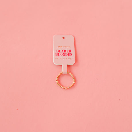 These dainty gold filled Beaded Bands™ are an elastic ring perfect to wear alone or to be stacked with your class ring or other statement rings.