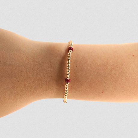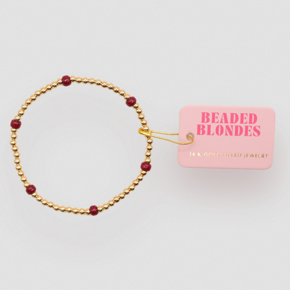 The maroon poppi bracelet is a mix of 3mm & czech glass beads.