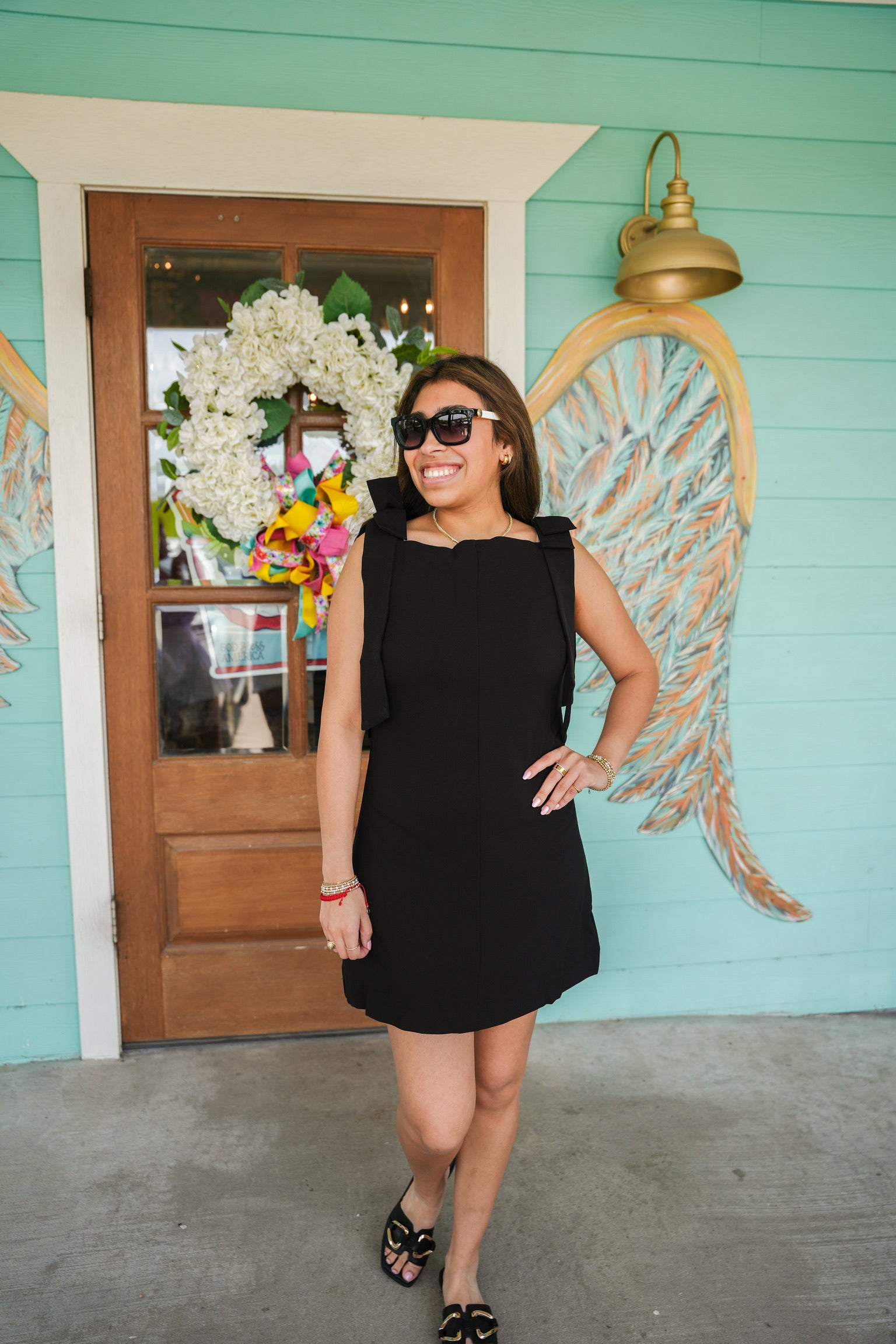 Black bow detail on sleeve