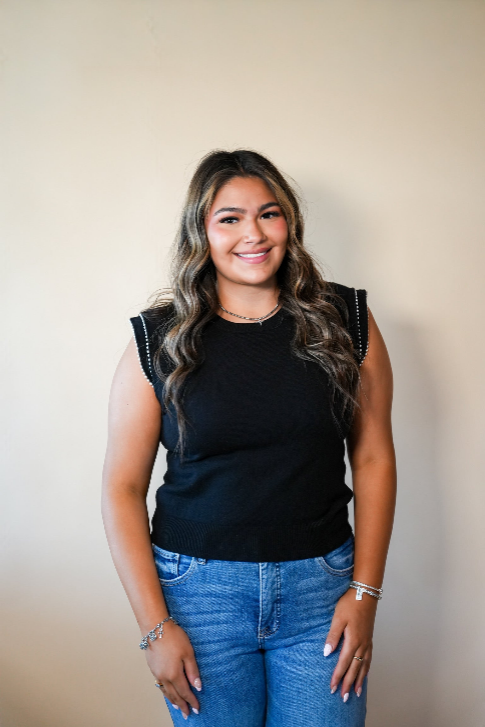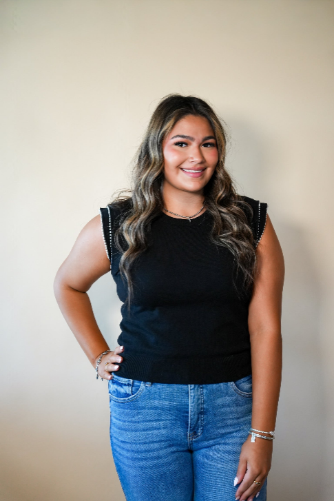The Black Pearl Trim Flutter Sleeve Top is a timeless blend of elegance and modern femininity. Crafted in a classic black hue, this top is elevated by delicate pearl trim detailing that adds a subtle touch of sophistication and charm.