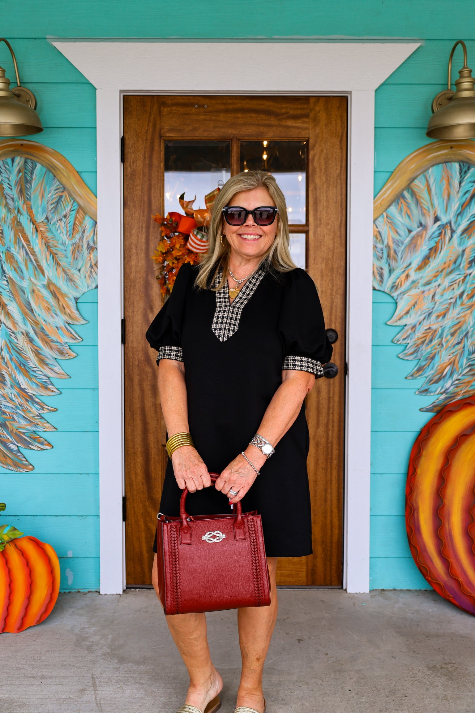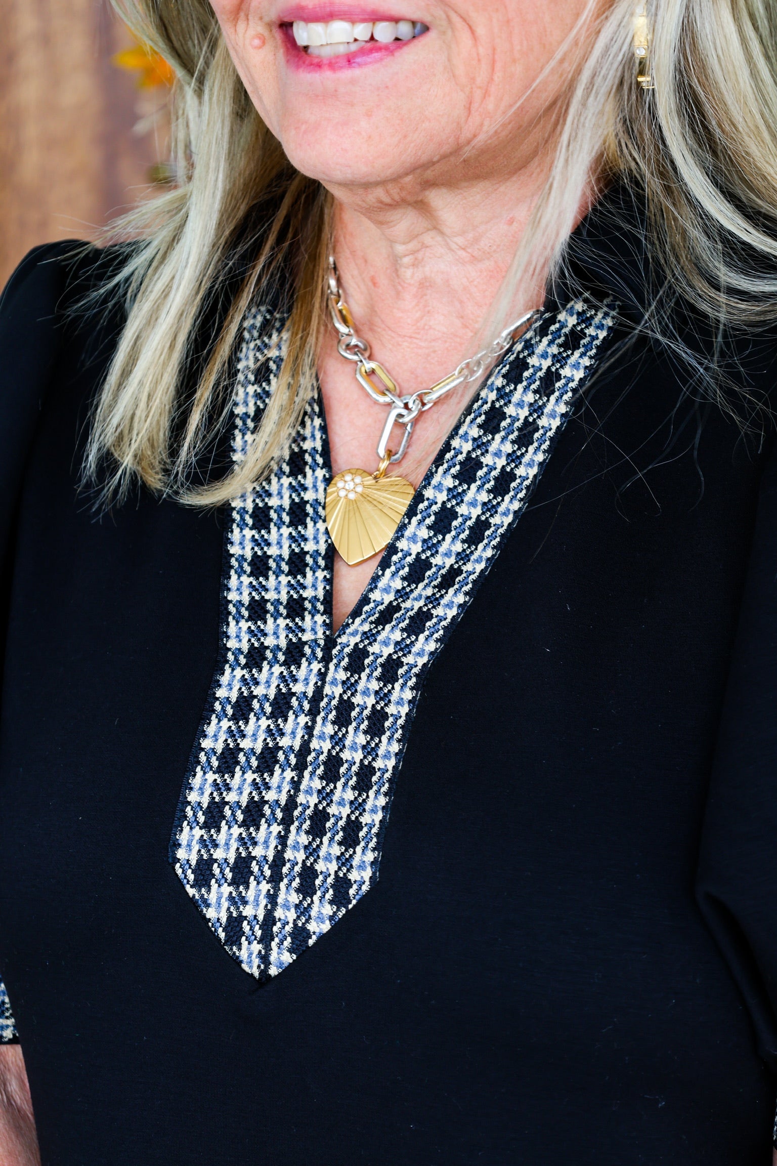 Black Plaid Detail Sleeve Dress