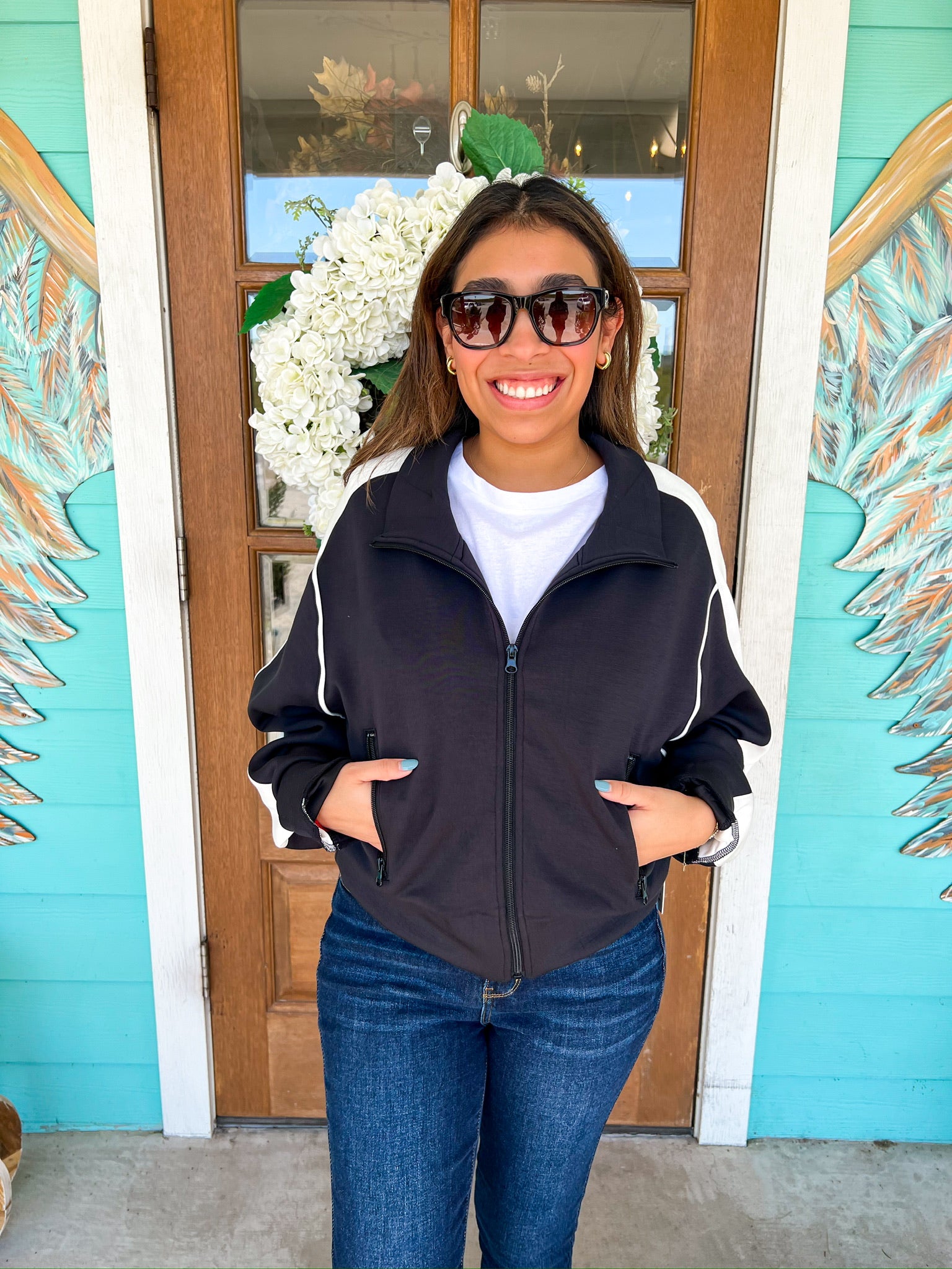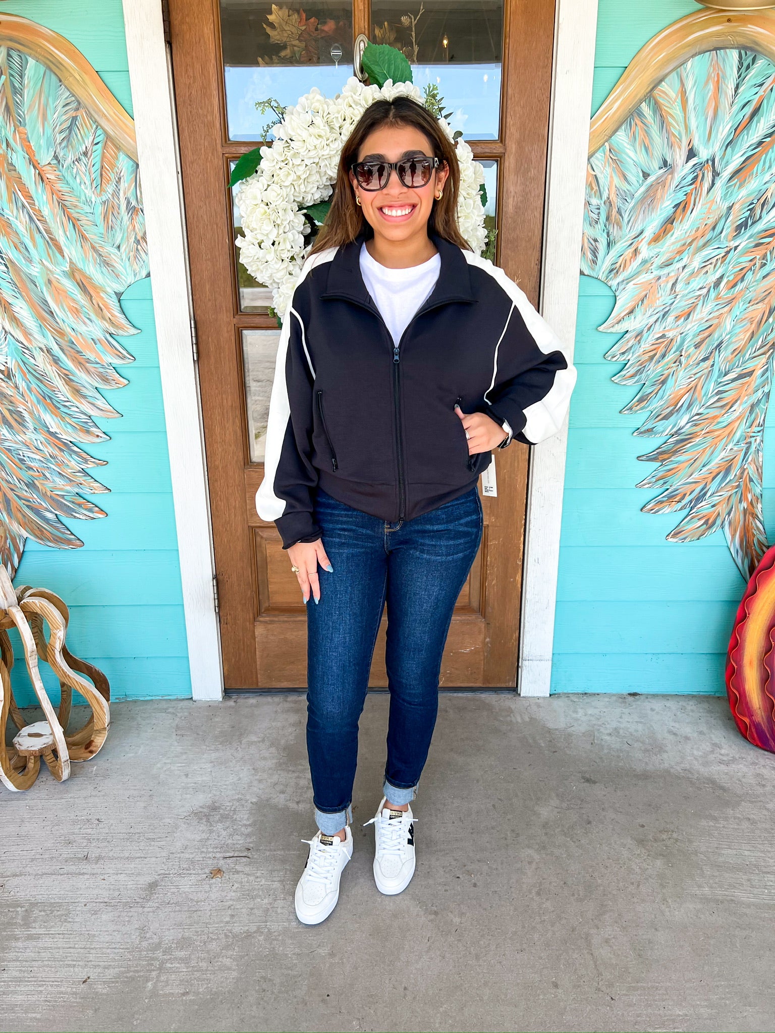 Black White Color Block Cloud Zip Up