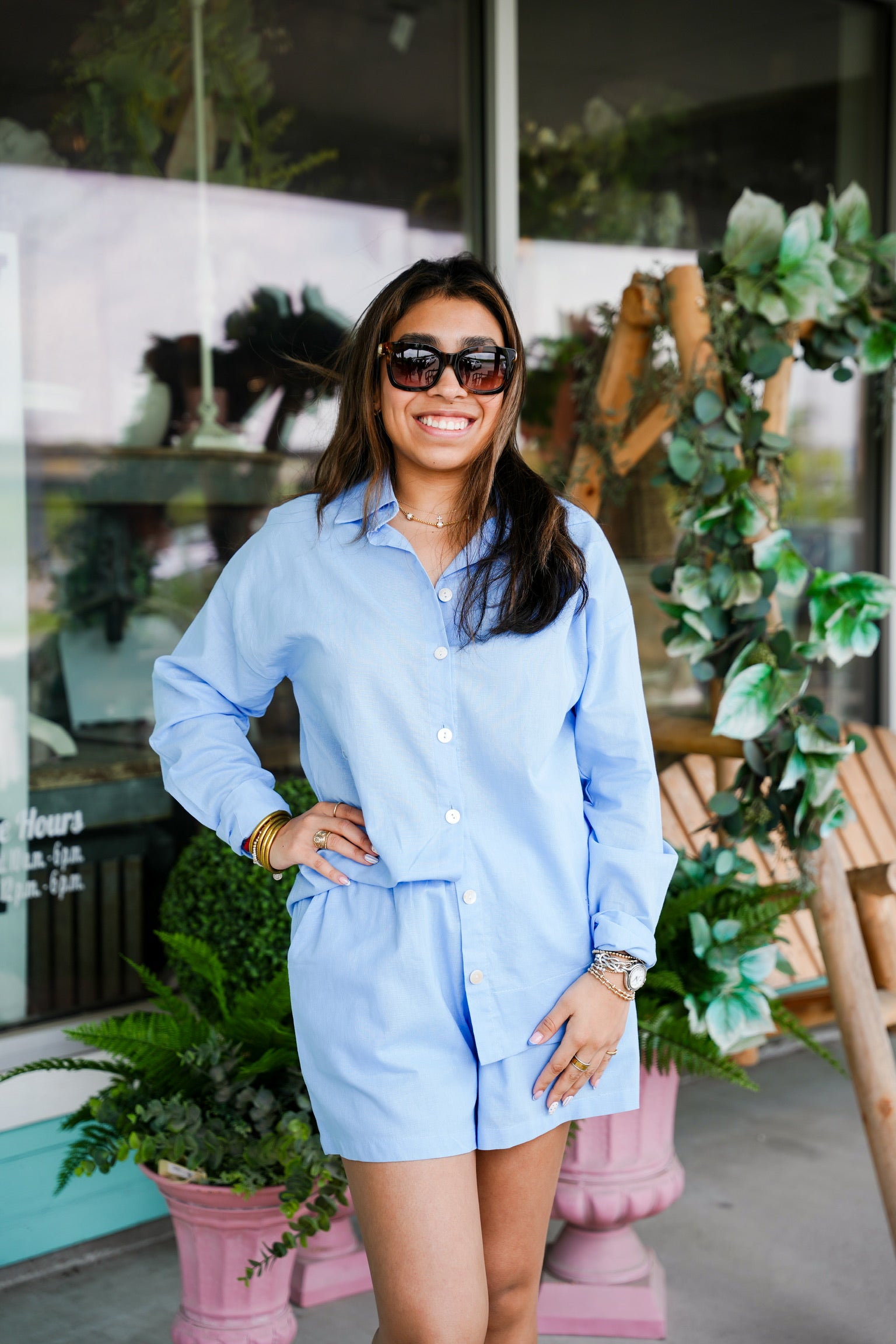 Blue Button Down Shirt and Shorts Set