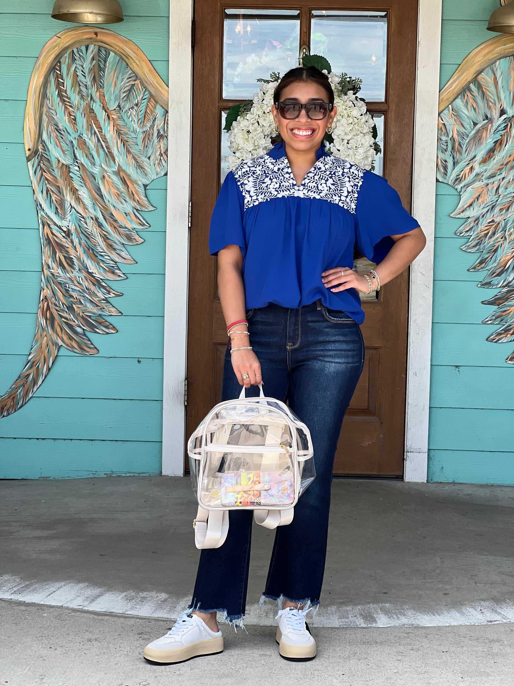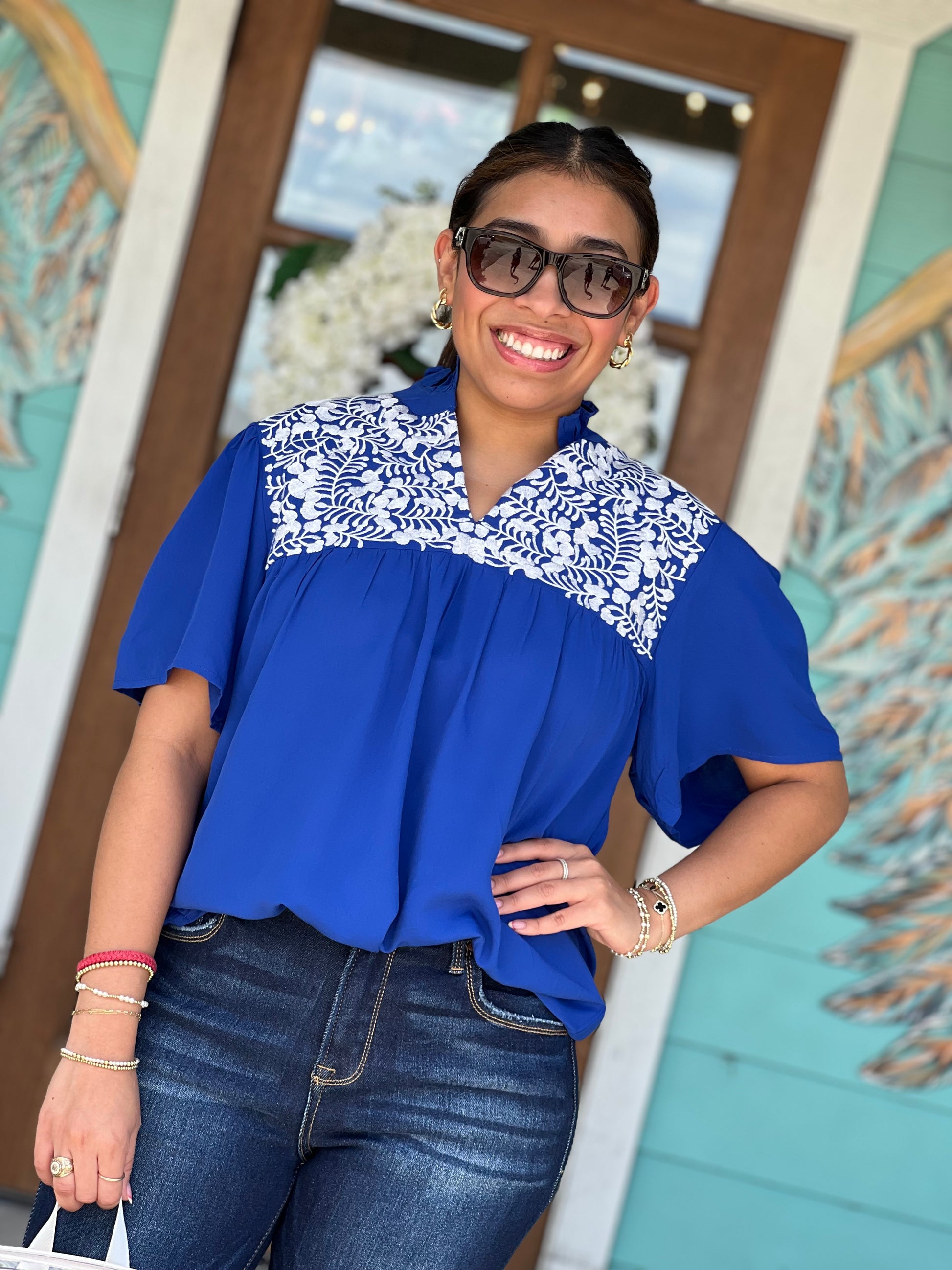 Blue Embroidered Drake Top