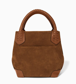 Crafted in the most sumptuous material – buttery suede in a rich luggage shade – the elegant and functional tote with intricate, laser-cut details transforms with your day. Cinch the interior side clasp for a sculpted look or wear it open in a relaxed square silhouette.