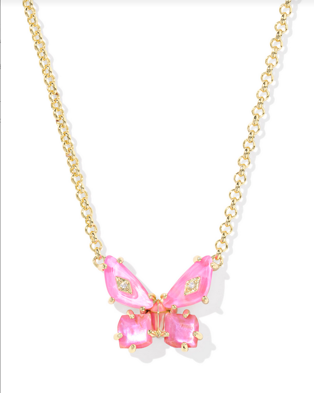 Kendra Scott Bianca Butterfly Gold Pink Mix Short Pendant Necklace