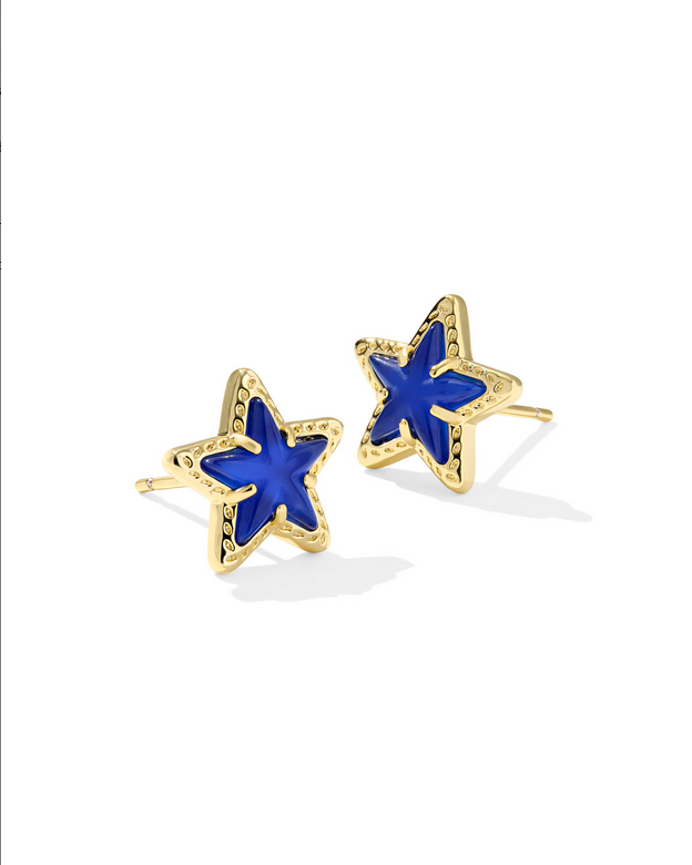 Add some star-spangled style to your earring collection with the Cassidy Gold Cobalt Illusion Stud Earrings. These fun studs feature a dimensional take on the star shape, framed with our signature hoofprint detailing.