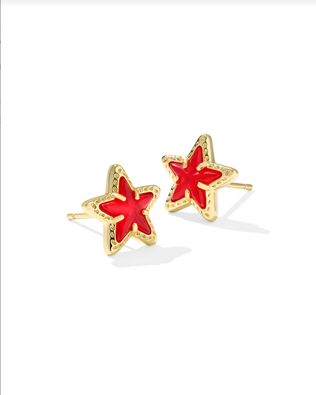 Add some star-spangled style to your earring collection with the Cassidy Gold Red Illusion Stud Earrings. These fun studs feature a dimensional take on the star shape, framed with our signature hoofprint detailing.