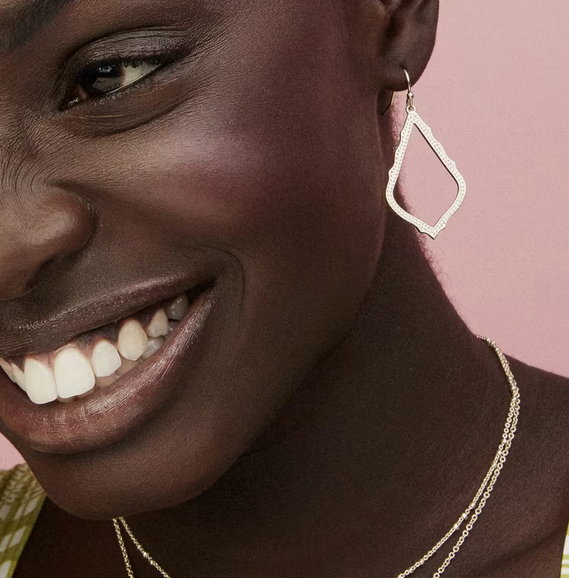 The Sophia Drop Earrings in Silver feature a delicate metallic frame with dainty details, creating a wear-anywhere accessory.