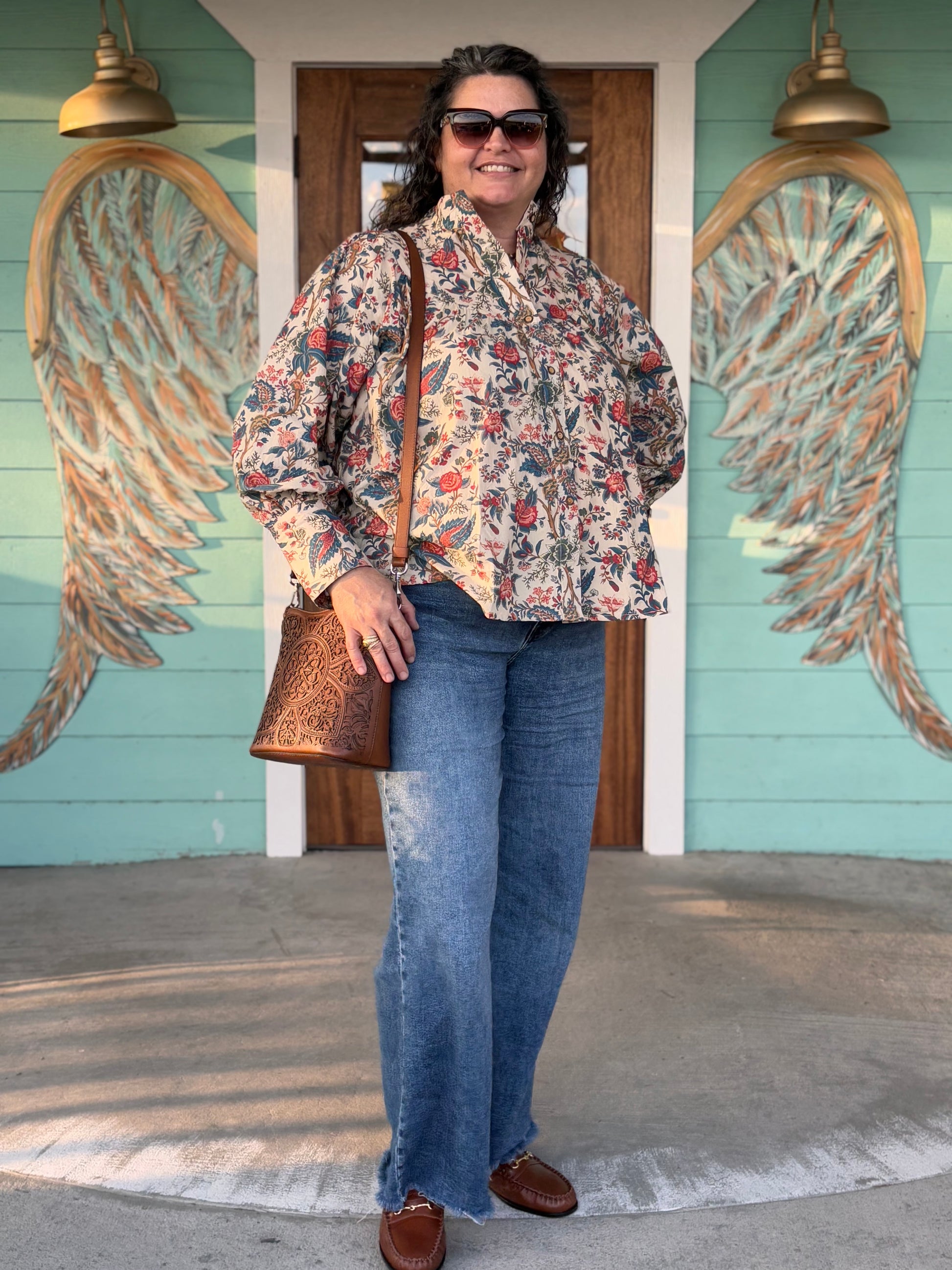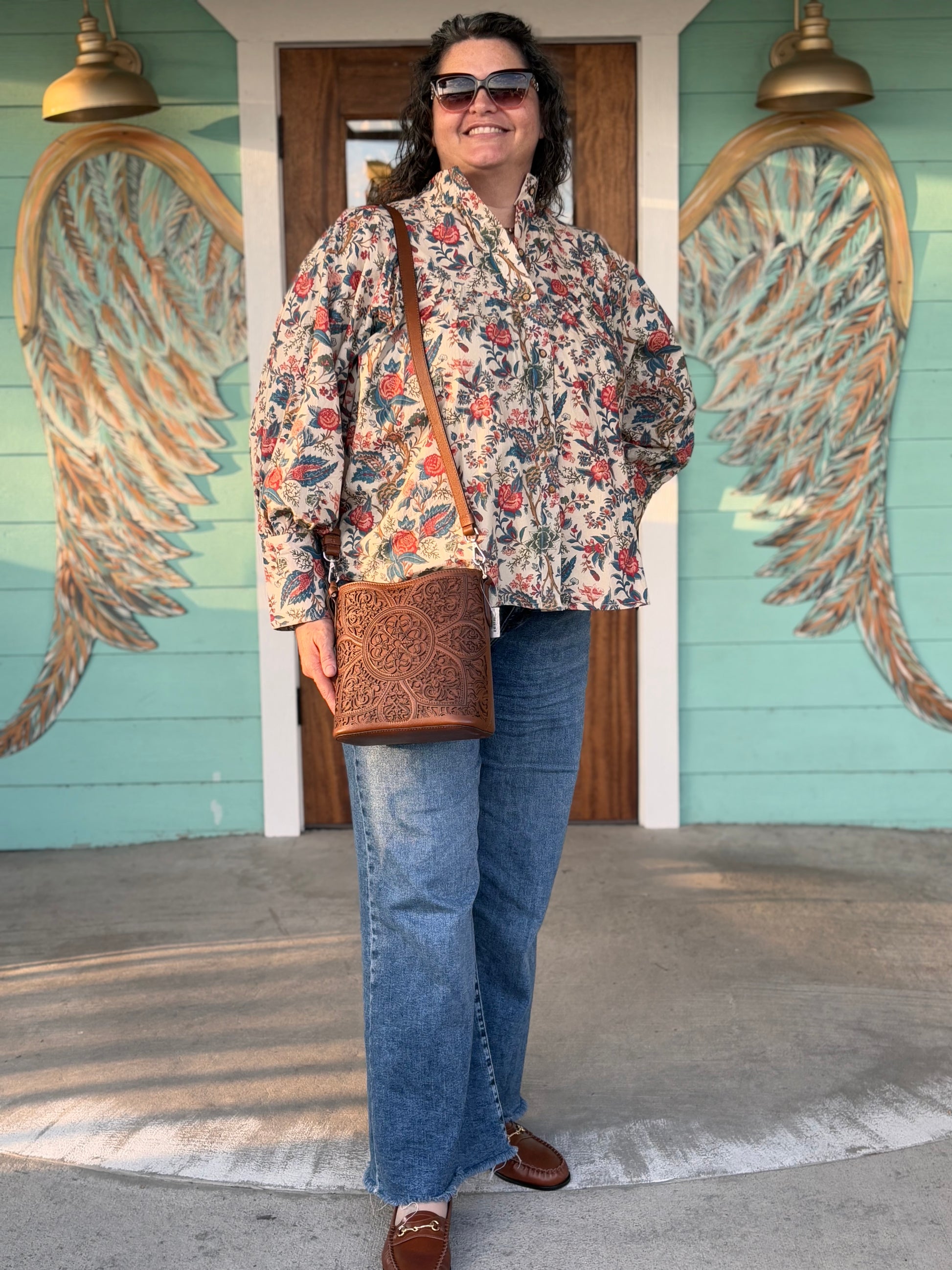Layerz Red & Blue Floral Button Down