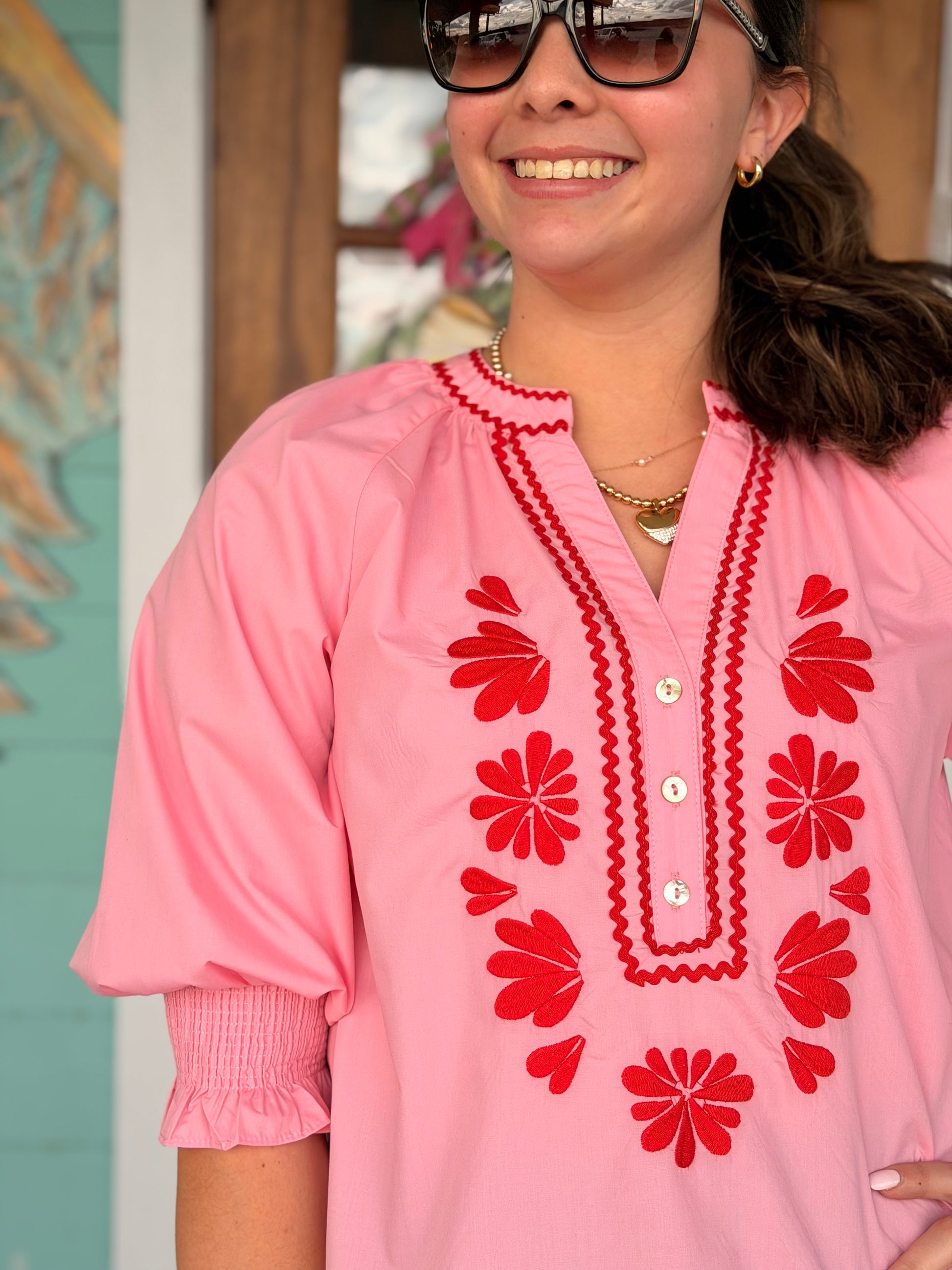 Light Pink w/Red Embroidered Top