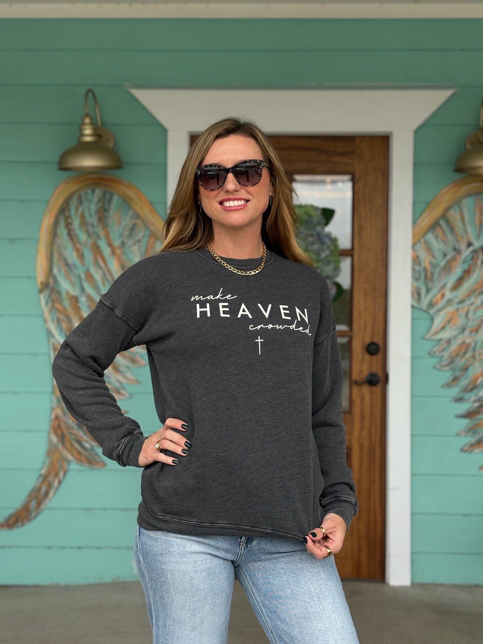 A powerful message in our softest fit yet. Our Make Heaven Crowded Black Sweatshirt is designed to be a daily reminder of grace, compassion, and kindness. Rendered in a classic, versatile black, this pullover combines a soulful mission with the premium comfort of your favorite weekend essential.