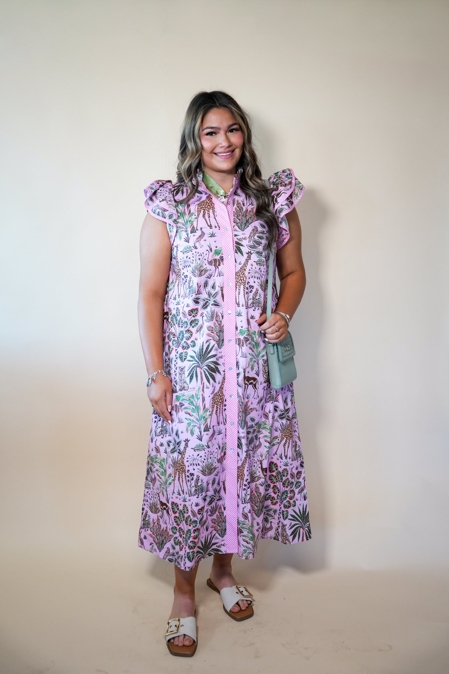 Make a bold statement with the Pink Wild Jungle Print Dress by Entro. Featuring a vibrant jungle-inspired print set against a lively pink backdrop, this eye-catching dress brings playful energy and tropical charm to your wardrobe.