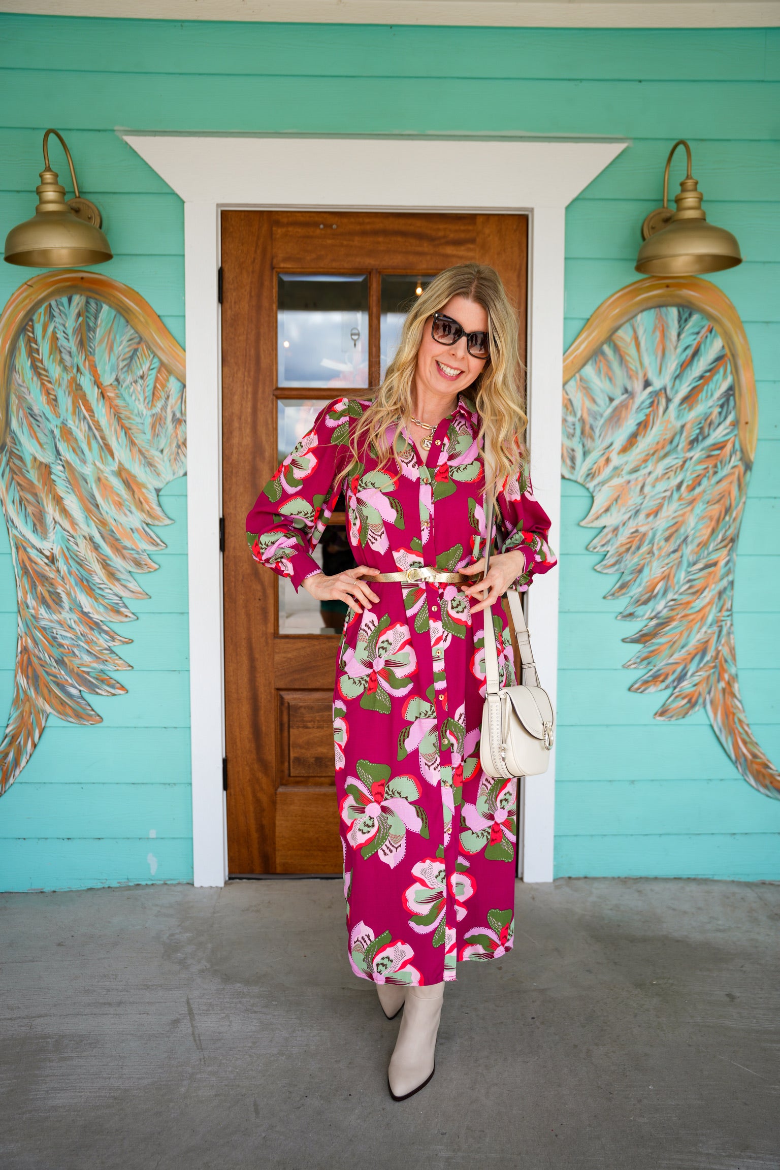 The Ava Dress is the perfect mix of chic and functional. Designed with a removable adjustable belt, you can personalize the fit to your liking, while the long puff sleeves with button cuffs add a touch of elegance and sophistication. Featuring practical side slits at the seam and hidden pockets, this midi-length dress combines style and comfort effortlessly.