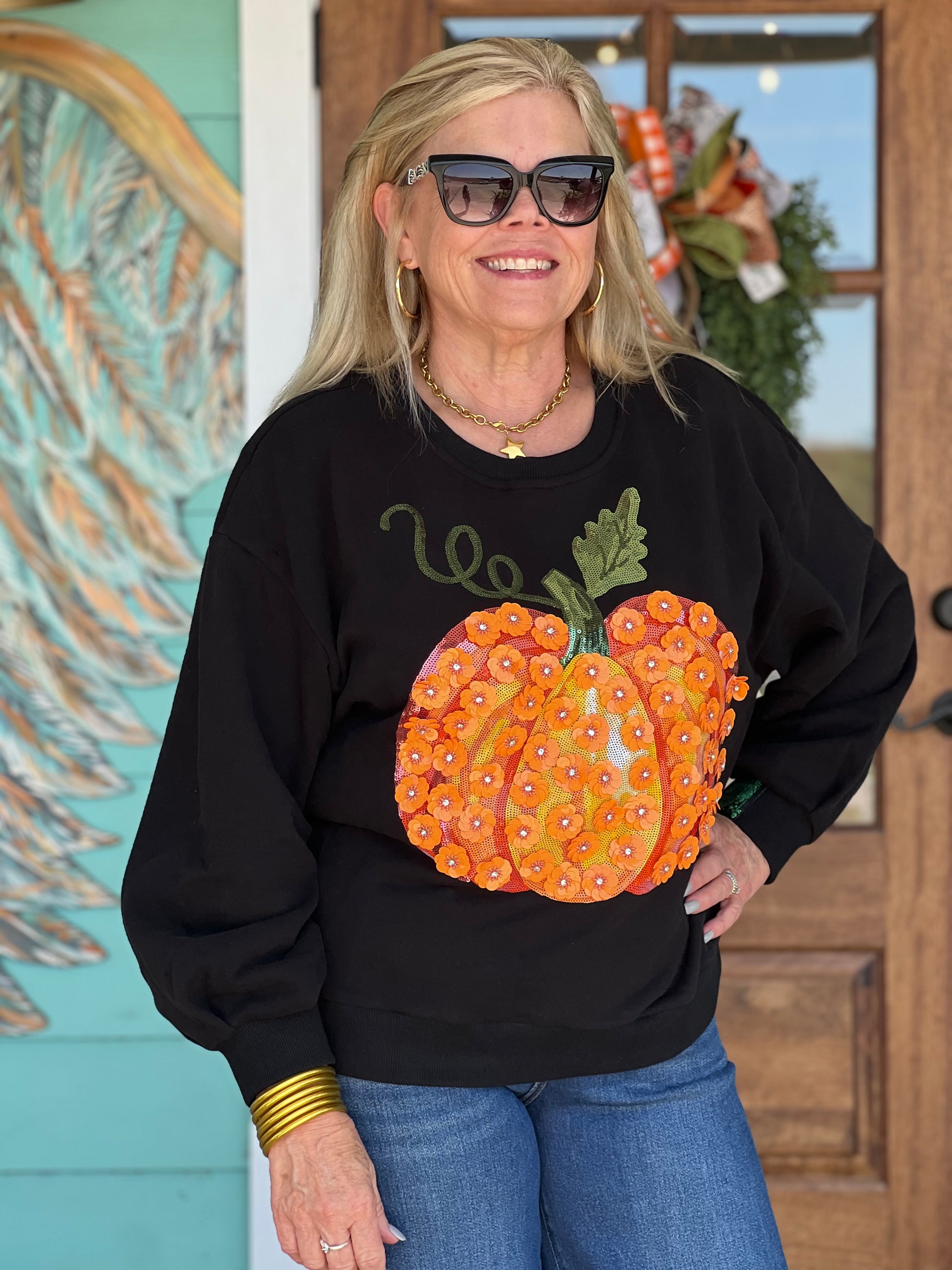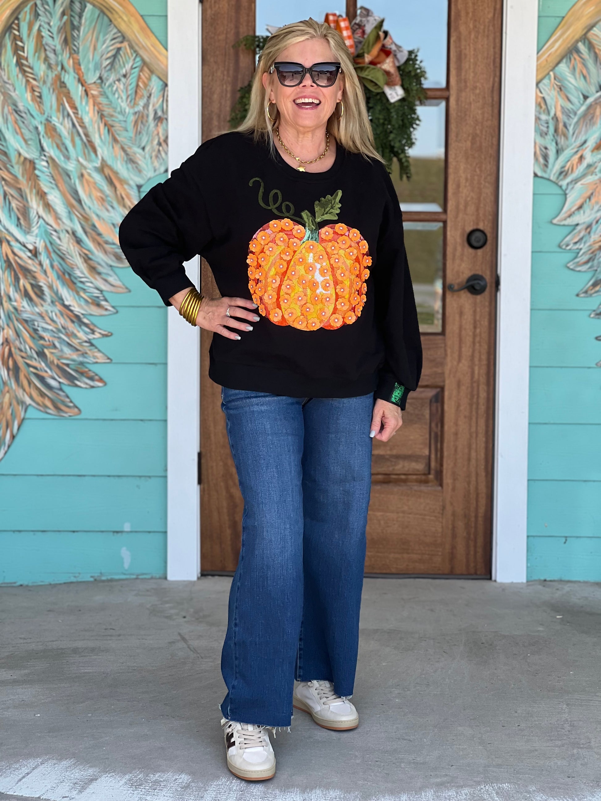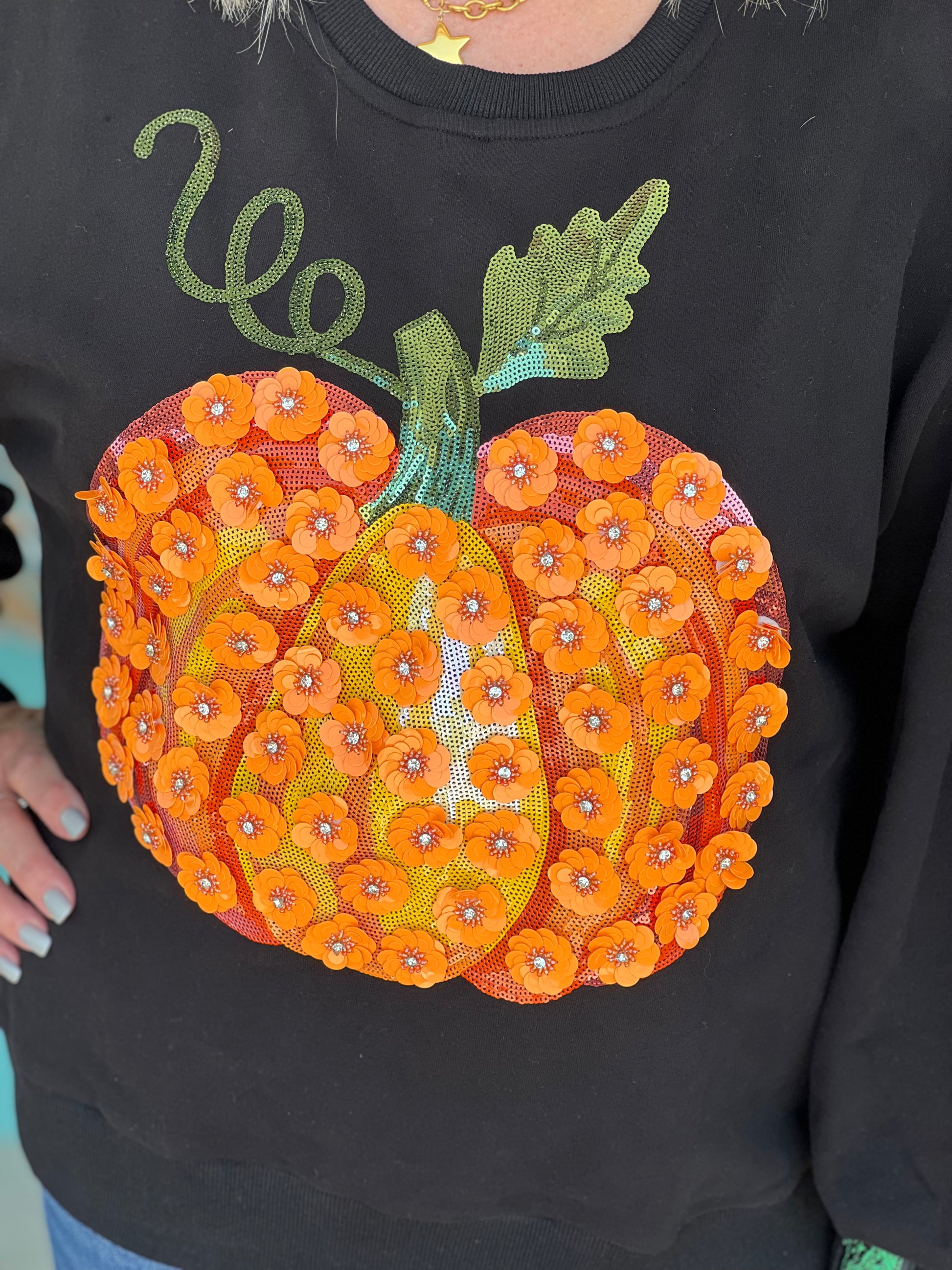 Queen of Sparkles Orange Sequin Pumpkin Sweatshirt