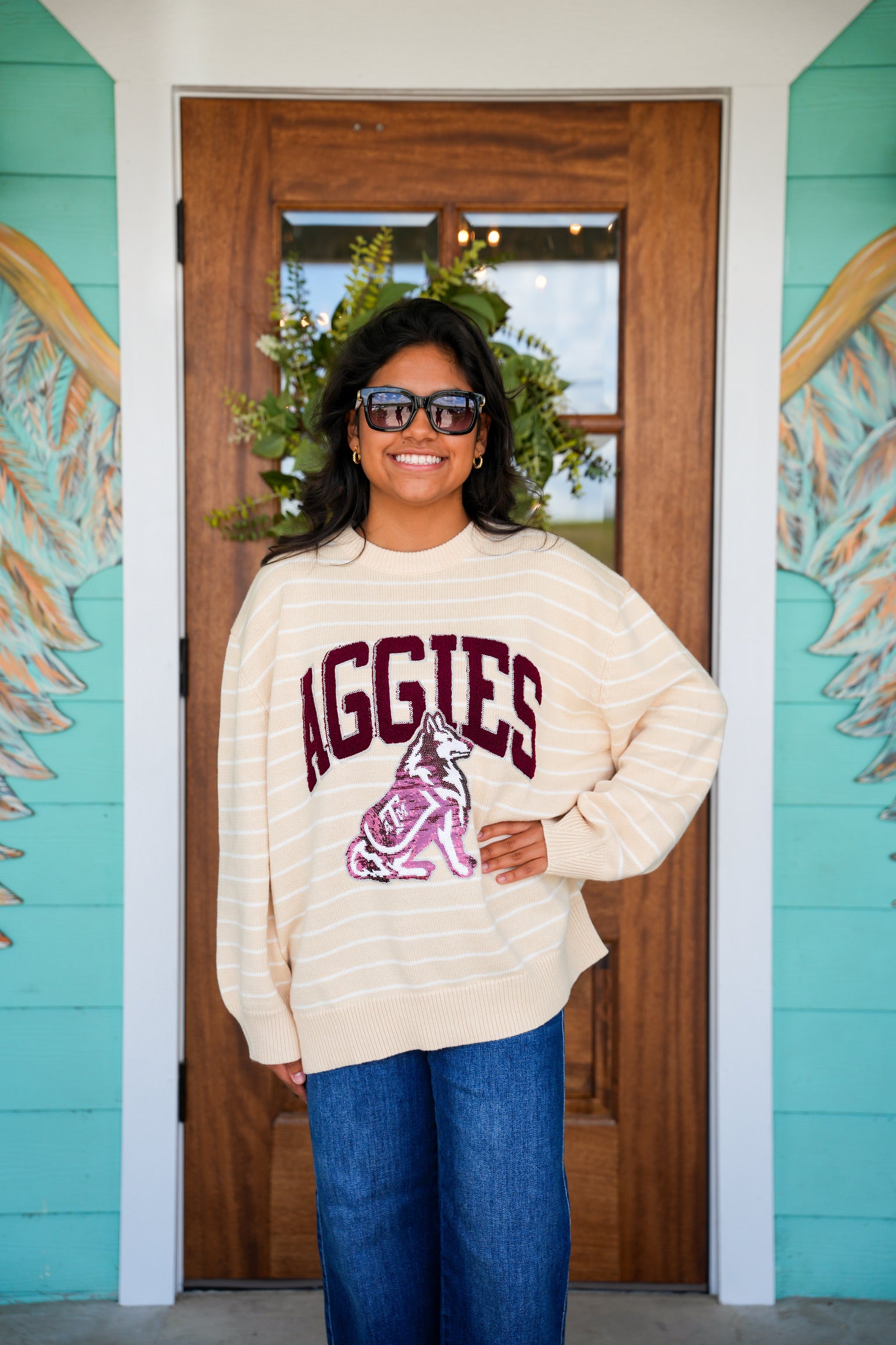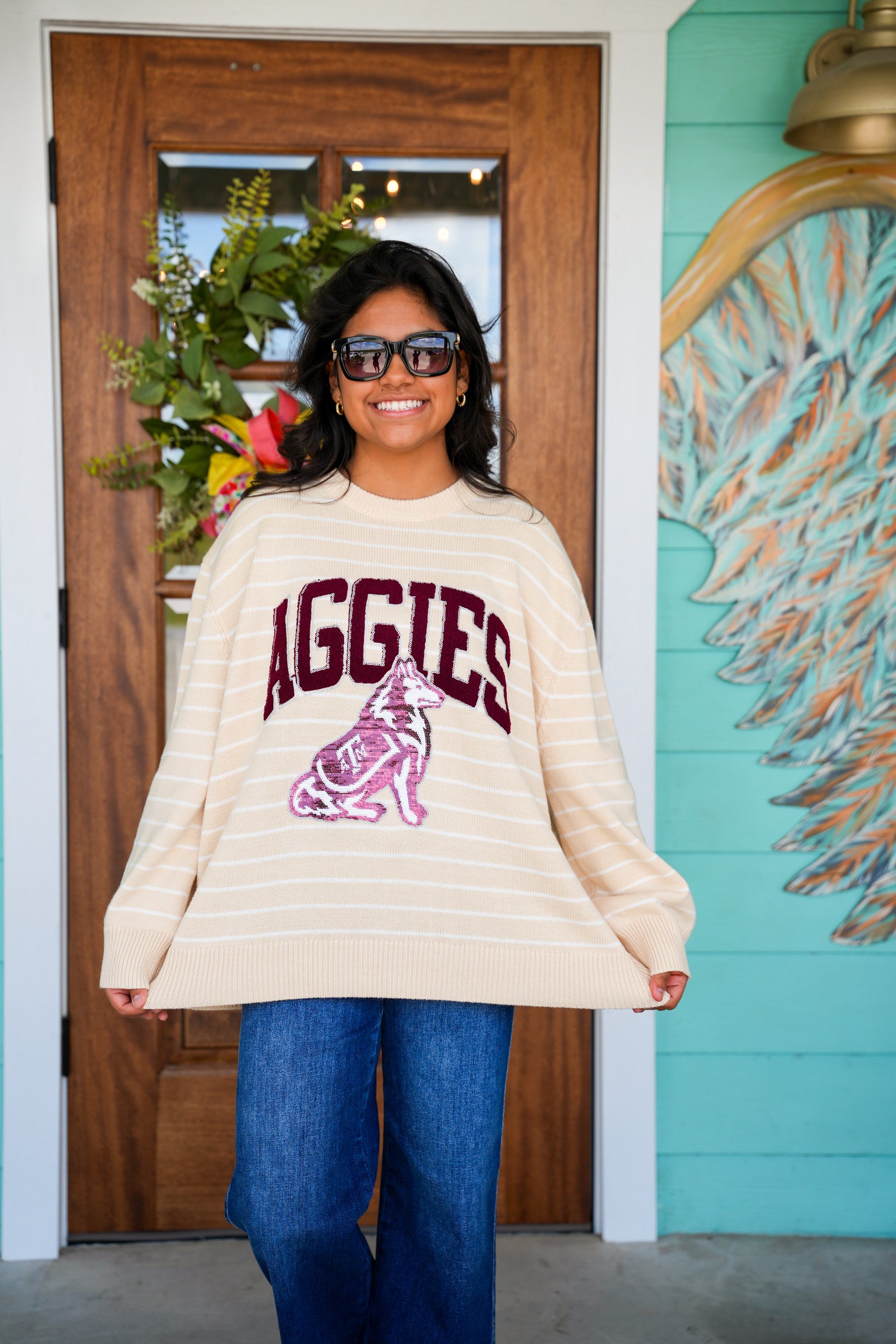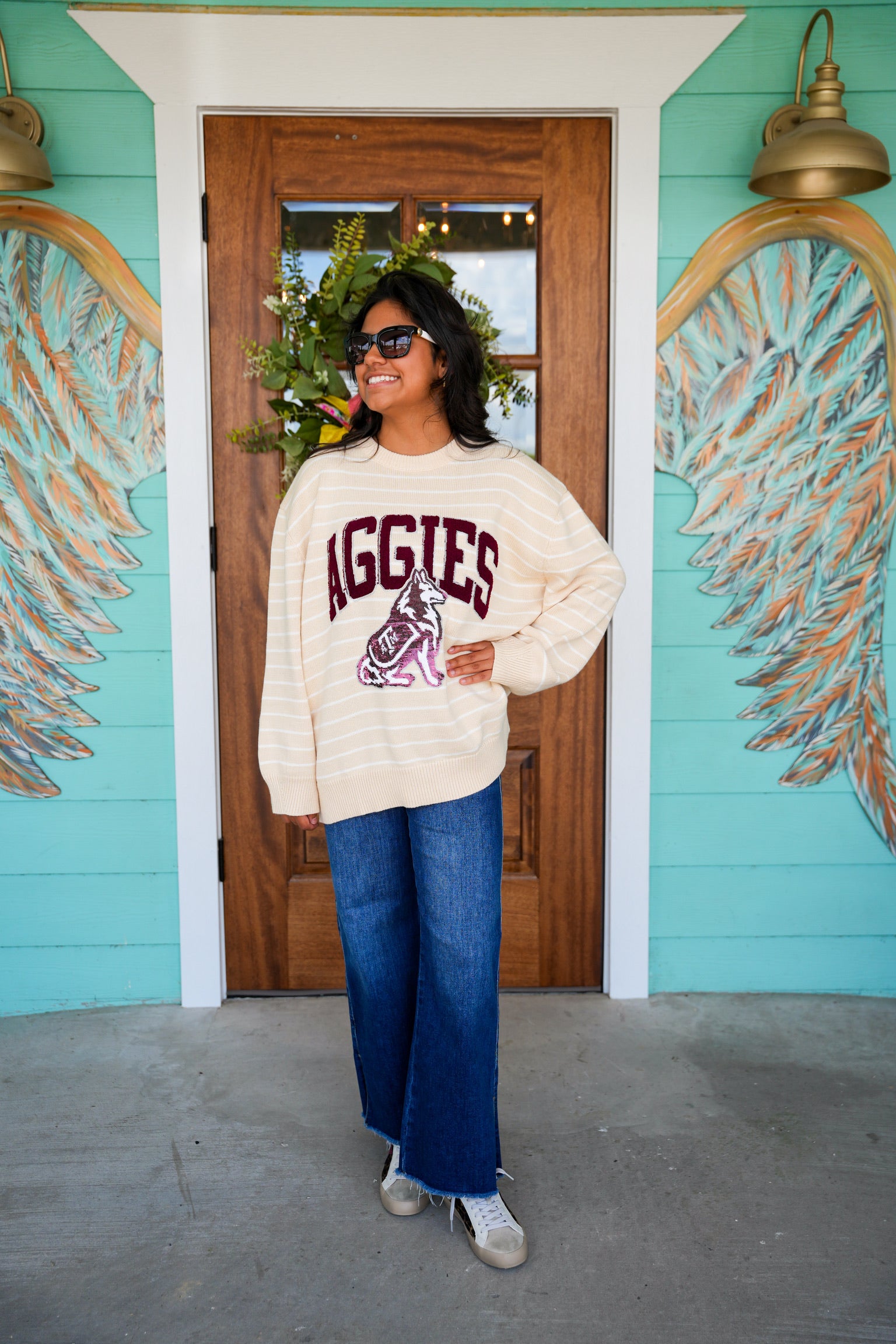 Queen of Sparkles Texas A&M Stripe Vintage Sweater