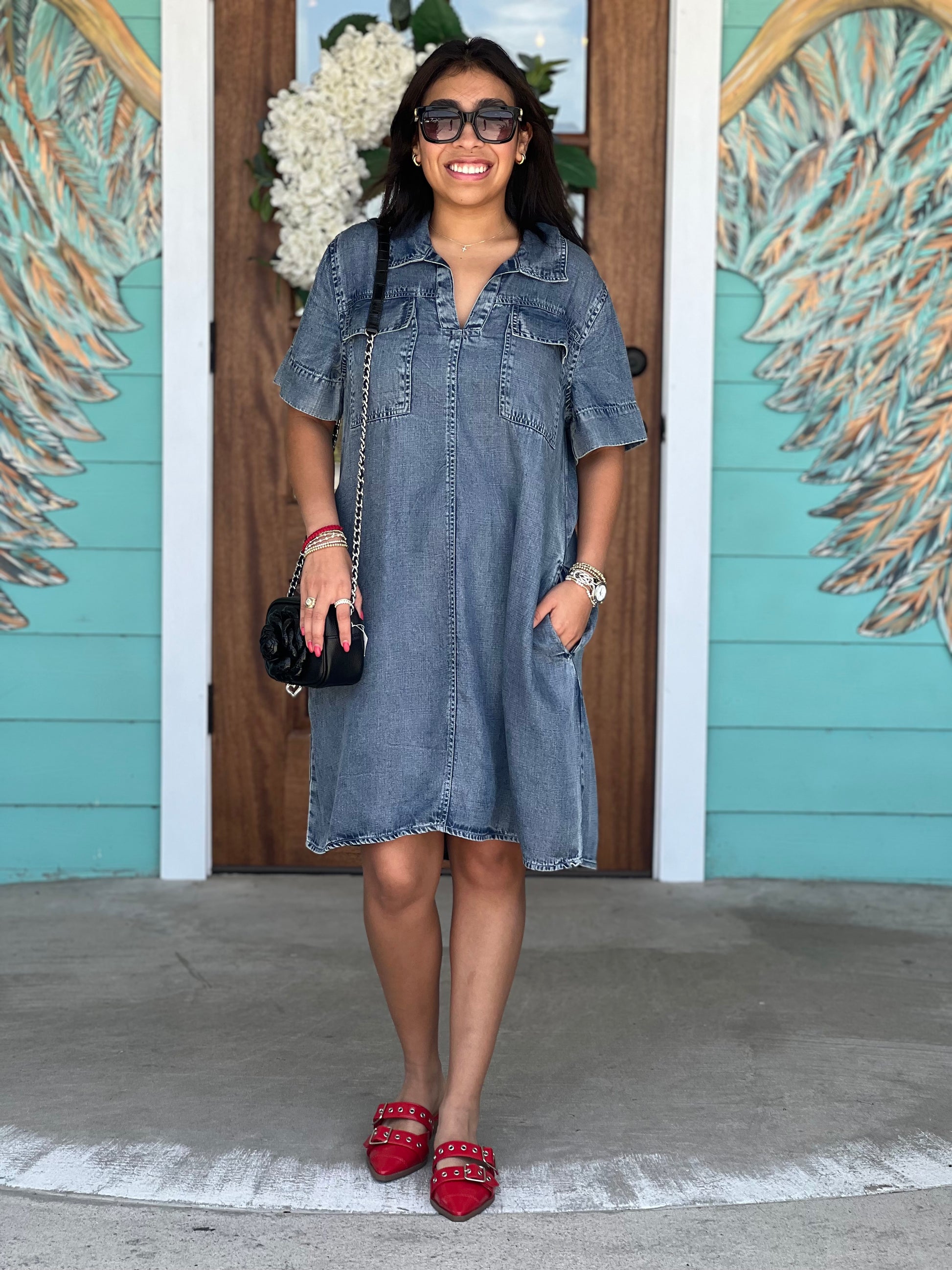Dress to impress with Uncle Frank Indigo Denim Shift Dress! Perfect for all your spring adventures, this fun dress is also a must-have for travel. Get ready to turn heads and have a blast in this versatile and stylish piece!